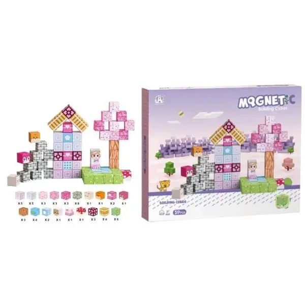 Magnetic Building Cubes, özel tasarlanmış mıknatıslı küpler sayesinde çocukların kolayca yapılar kurmasını sağlar. Evler, kuleler, hayvan figürleri ve oyun sahneleri oluşturulabilir. Parçalar birbirine güçlü şekilde tutunur, oyun sırasında dağılmaz.