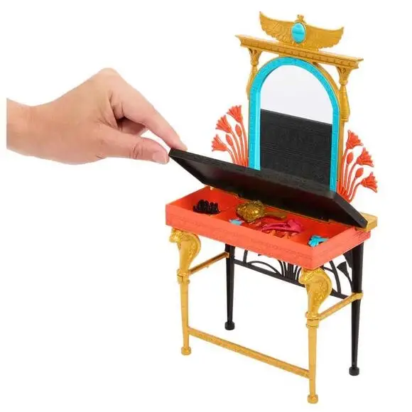 Set içerisinde bir adet Cleo De Nile bebeği, altın rengi bir tuvalet masası (makyaj masası), tabure ve çeşitli bakım/güzellik aksesuarları (ayna, fırça, kozmetik ürünleri vb.) yer alır.