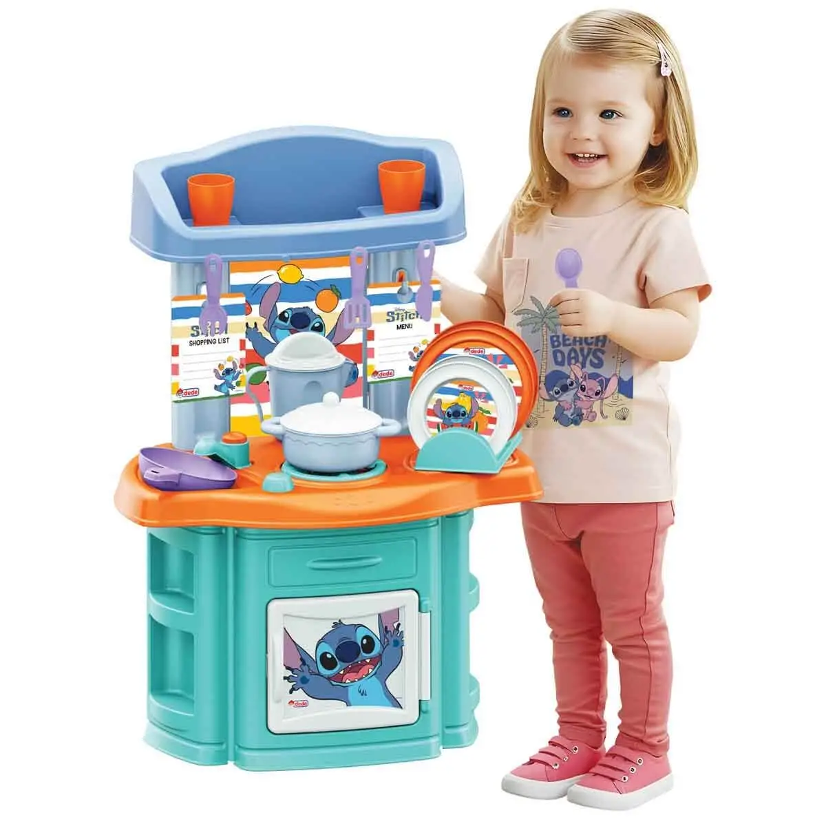 En sevdiğin figürün bu kez galaksiler arası savaş çıkarmıyor, federal ajanları peşine takmıyor ya da uzay savaşı başlatmıyor. Bu kez mutfak setinin her bir köşesinde desenleri ile keyifli vakit geçirmeni sağlıyor. Tavada lezzetli yemek yapabilir, piştiyse ocaktaki tencerenin altını kapatabilir, tabaklara lezzetli yiyeceklerden koyarak çatal-kaşık eşliğinde misafirlerine servis edebilirsin. Mutfak setini adım adım kurduktan sonra 16 parçadan oluşan mutfak malzemelerini de yerleştirerek eğlenceli oyunlar oynamaya hemen başlayabilirsin. Misafirlerin geldi mi? O zaman onlara en lezzetli yemeklerden ikram edelim. Stitch Şef’in bu yemeklere puanı 10 üzerinden 10!